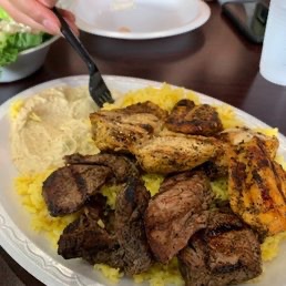 On a bed of rice pilaf, they place skewers with juicy steak and chicken cubes. This is our version of Greek Wraps, and it was a special request by birthday boy Dylan.